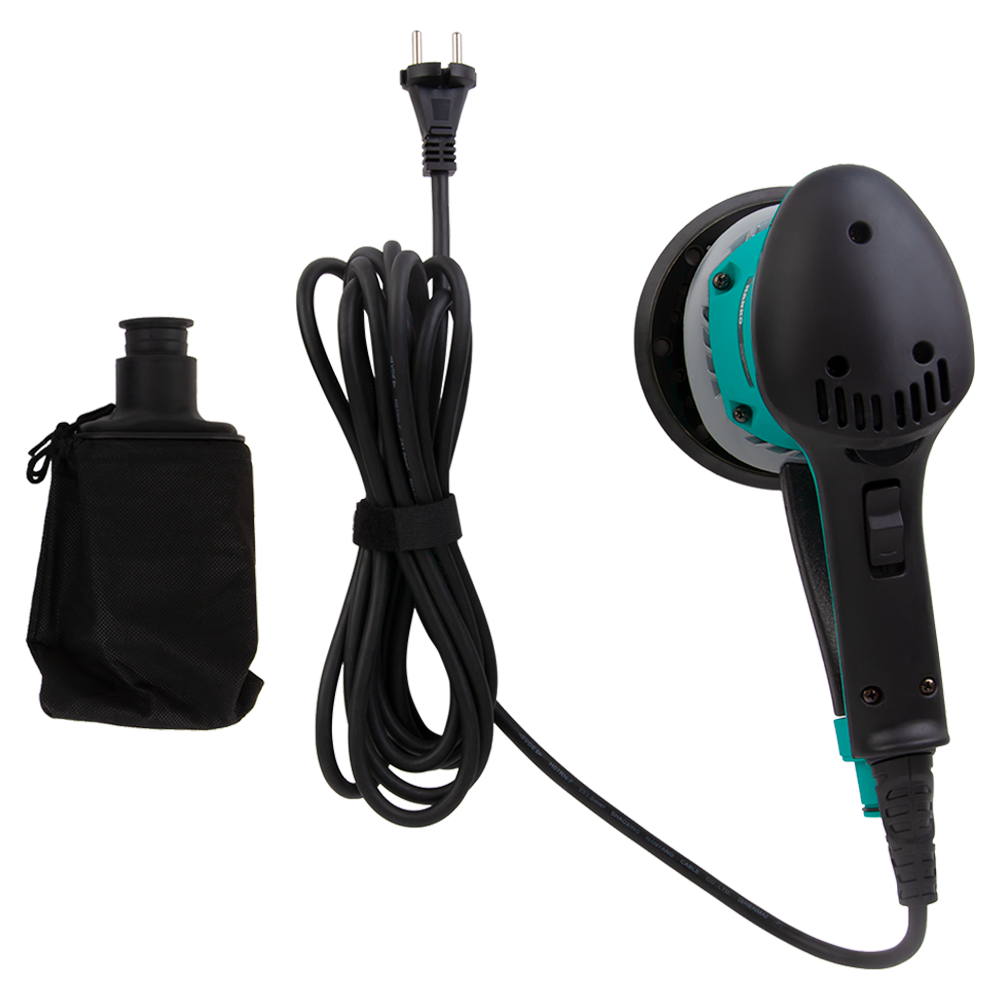 Ротор-орбитальная шлифовальная машинка с автономным пылеотводом, подошвой 150 мм и орбитальным ходом 5 мм. Предназначена для шлифования поверхности из металла, древесины, камня, пластика и других материалов. Специальная форма корпуса удобно помещается в руке, обеспечивая надежный захват инструмента. Машинка оснащена электронным регулятором оборотов и датчиками от перегрева и перегрузок. К патрубку можно подключить пылесборник или строительный пылесос для поддержания чистоты рабочего места.