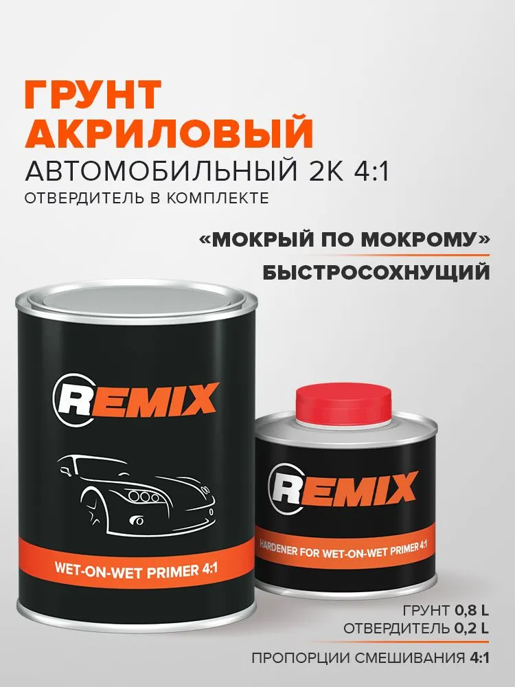 Грунтовка для автомобиля REMIX WET-ON-WET PRIMER — двухкомпонентный акриловый грунт 2К, разработанный для работы по технологии «мокрый по мокрому». Применяется в кузовном ремонте при окраске новых деталей и при восстановлении лакокрасочного покрытия без этапа шлифования между грунтом и базовой краской. Грунт образует ровную, гладкую поверхность и обеспечивает стабильную адгезию, что напрямую влияет на качество и глубину финишного покрытия.