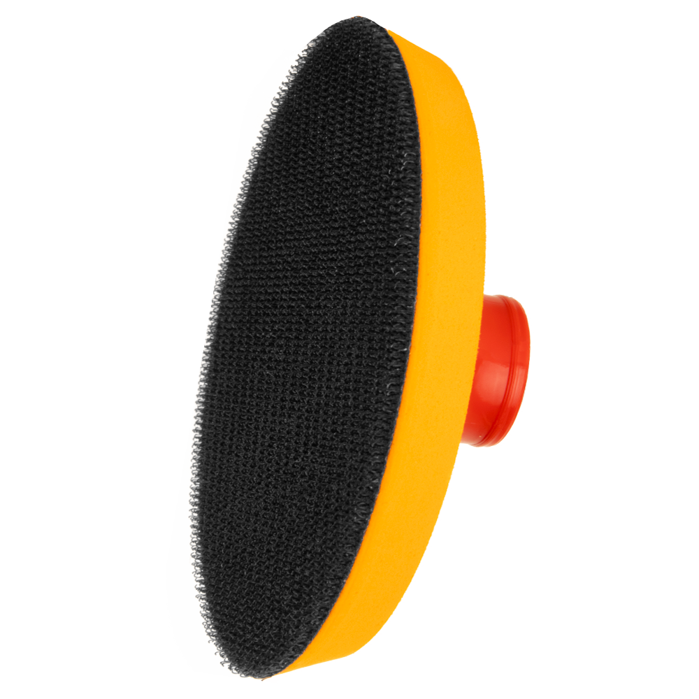 Диск-подошва средней жесткости (150 мм, без отверстий) для крепления полировальных дисков. Устанавливается на угловые ротационные машинки с регулятором оборотов. Обеспечивает легкую смену дисков во время работы, не создает дисбаланса. Надежное крепление полировальников гарантируется липучкой Velcro, а сама подошва крепится к полировальной машине на резьбу — M14. Максимальная частота вращения — 10000 об/мин.