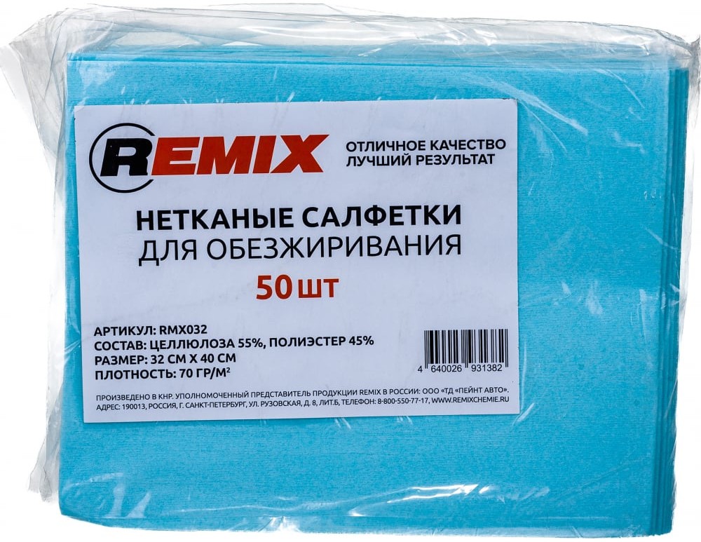 Нетканая салфетка для обезжиривания REMIX (синяя) 50шт