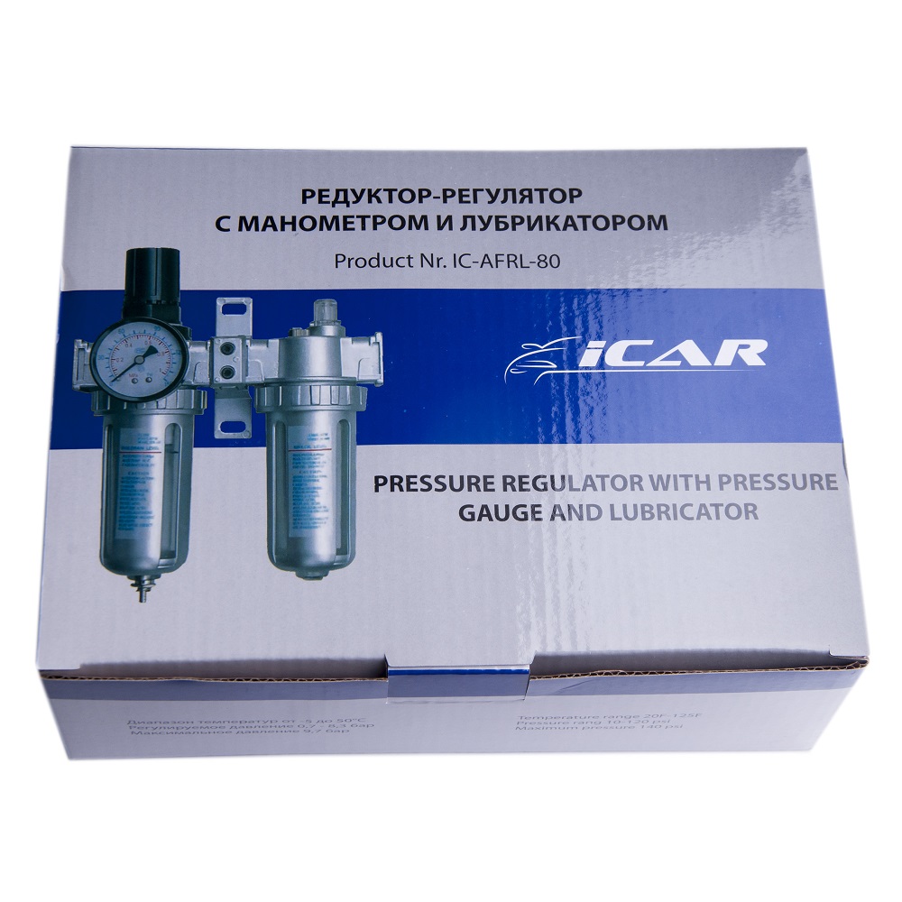 Редуктор-регулятор с манометром и лубрикатором IC-AFRL-80 предназначен для очистки сжатого воздуха от капельной влаги, минерального масла, твердых частиц и удаления конденсата в пневматических приводах и системах промышленного оборудования.
