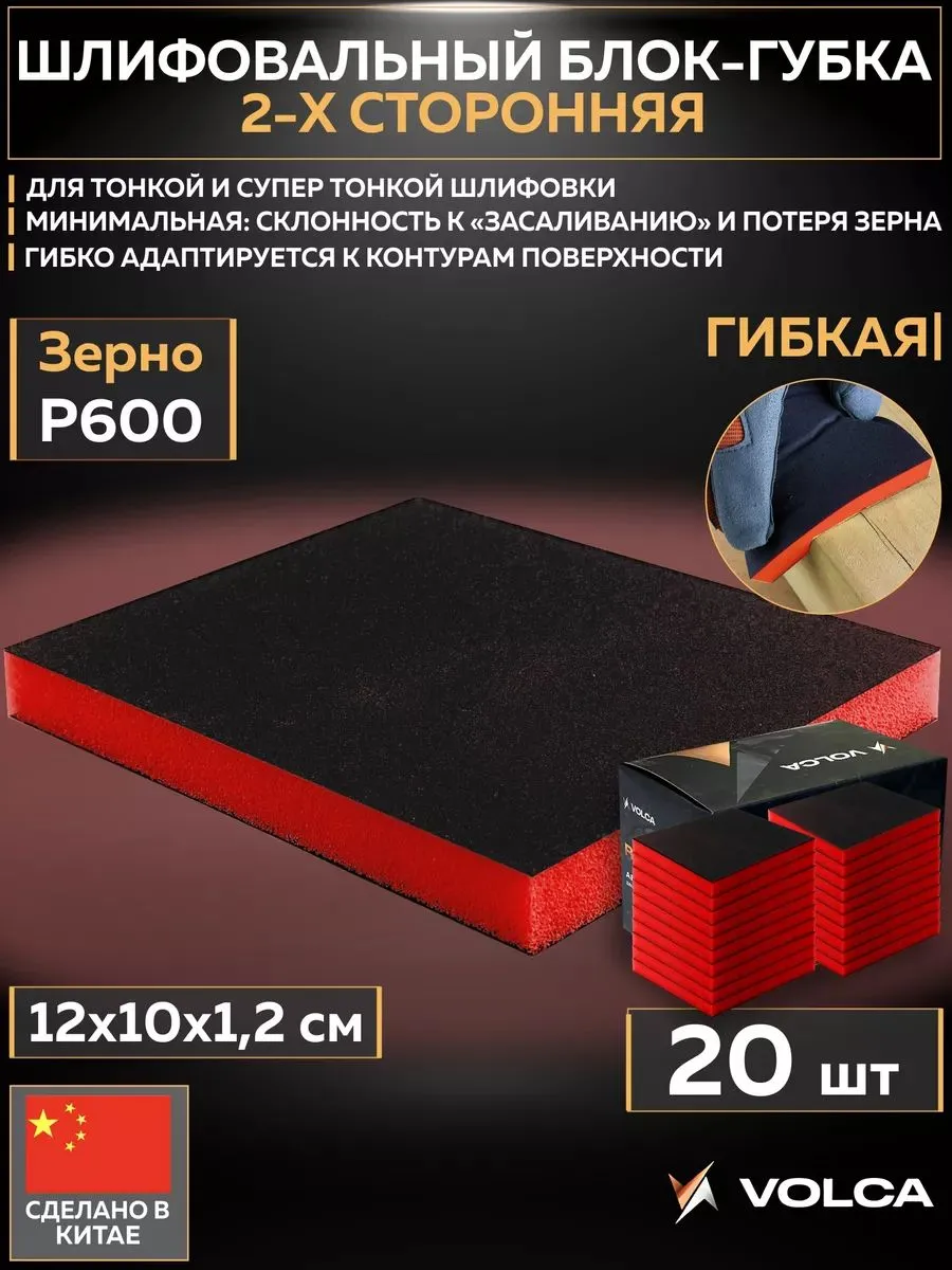 Идеально подходит для профессиональной подготовки поверхностей перед покраской автомобилей. Двухсторонняя шлифовальная губка с зерном P600 обеспечивает высококачественную тонкую обработку сложных контуров кузова, минимизирует риск повреждения поверхности. Благодаря низкому засаливанию сохраняет эффективность длительное время. Упаковка содержит 20 штук (размер каждой 12x10x1,2 см), что делает её удобной для регулярного использования в автосервисе.